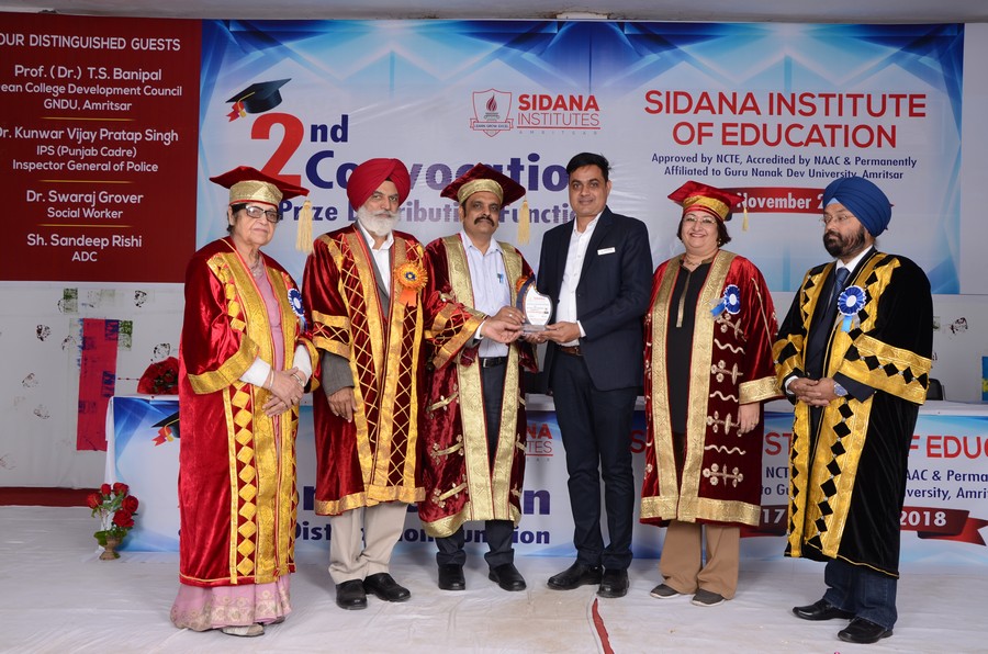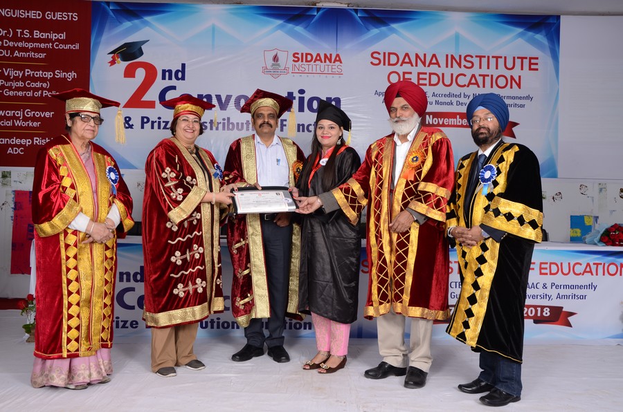 3rd Convocation of Sidana Institute of Education was held on 18 Dec 2023 at Sidana campus, Ram Tirath Road, Amritsar. Mrs Surinder Kaur wife of S. Harbhajan singh ETO , Power and PWD, cabinet Minister, presided over the Convocation while Sh. Naresh Modgil was chief guest of the day. The other guest included Arwinder Bhatti,Senior Aam Admi Party leader , Bollywood actor ,Sh. Raman Kumar Sharma , Deputy chief Engineer , Enforcement Punjab,PSPCL, Mrs. Neetu Tangri and Mr. Sanjeev Tangri .In this 3rd convocation of Sidana Institute of Education, 200 students of three sessions of B.Ed. were awarded with degrees. Approximately 50 students of Sidana Institute of Management & Technology were also awarded with Degree of MBA, BBA and BCA.