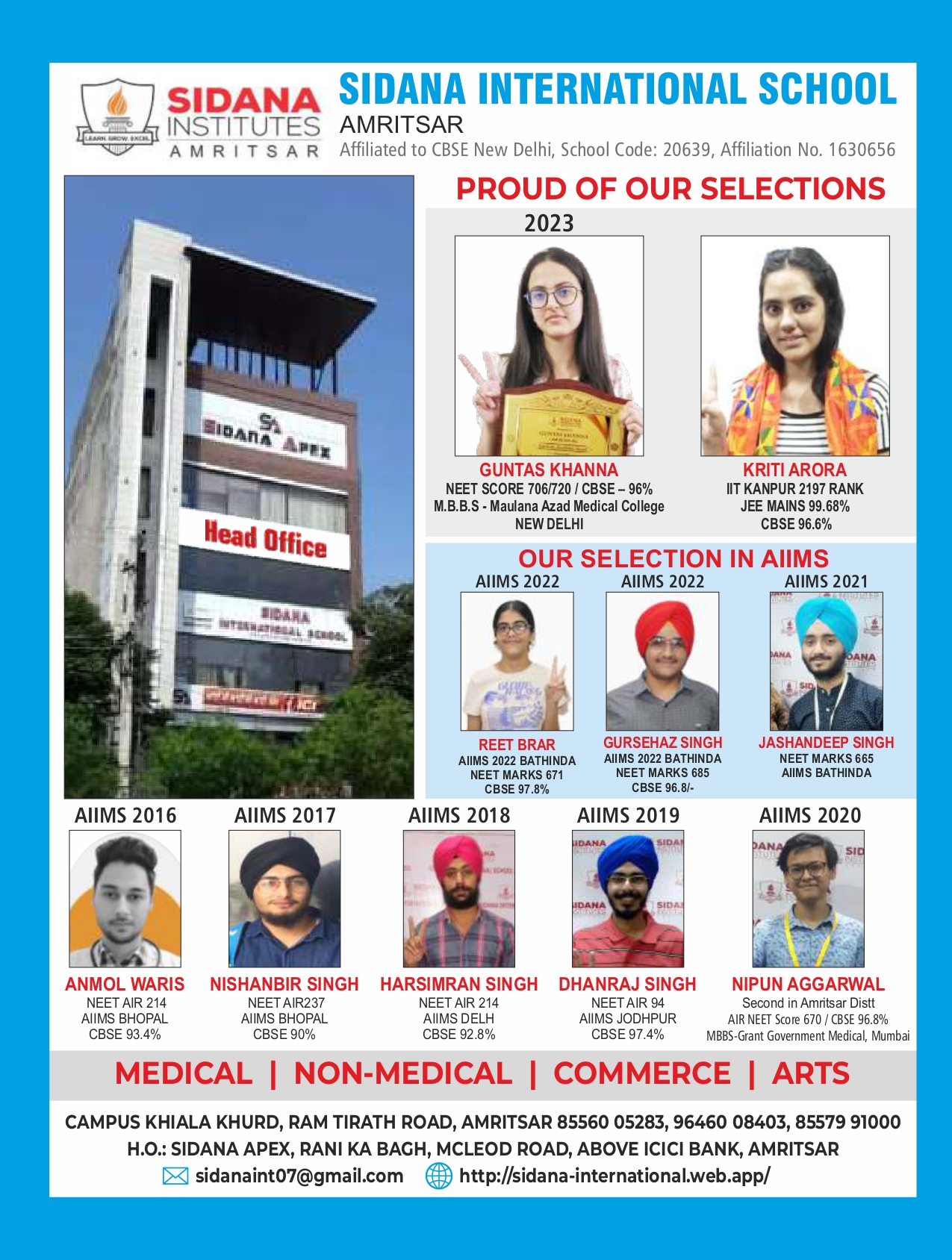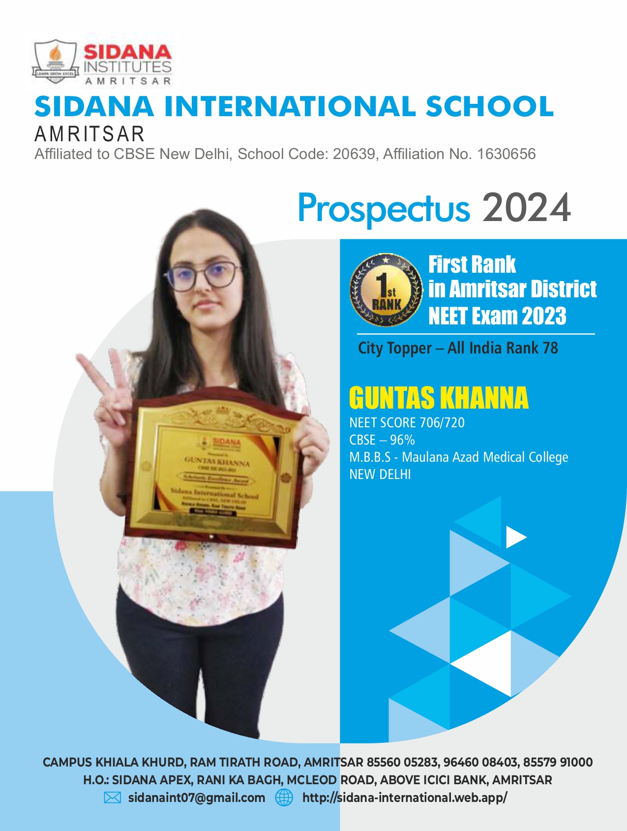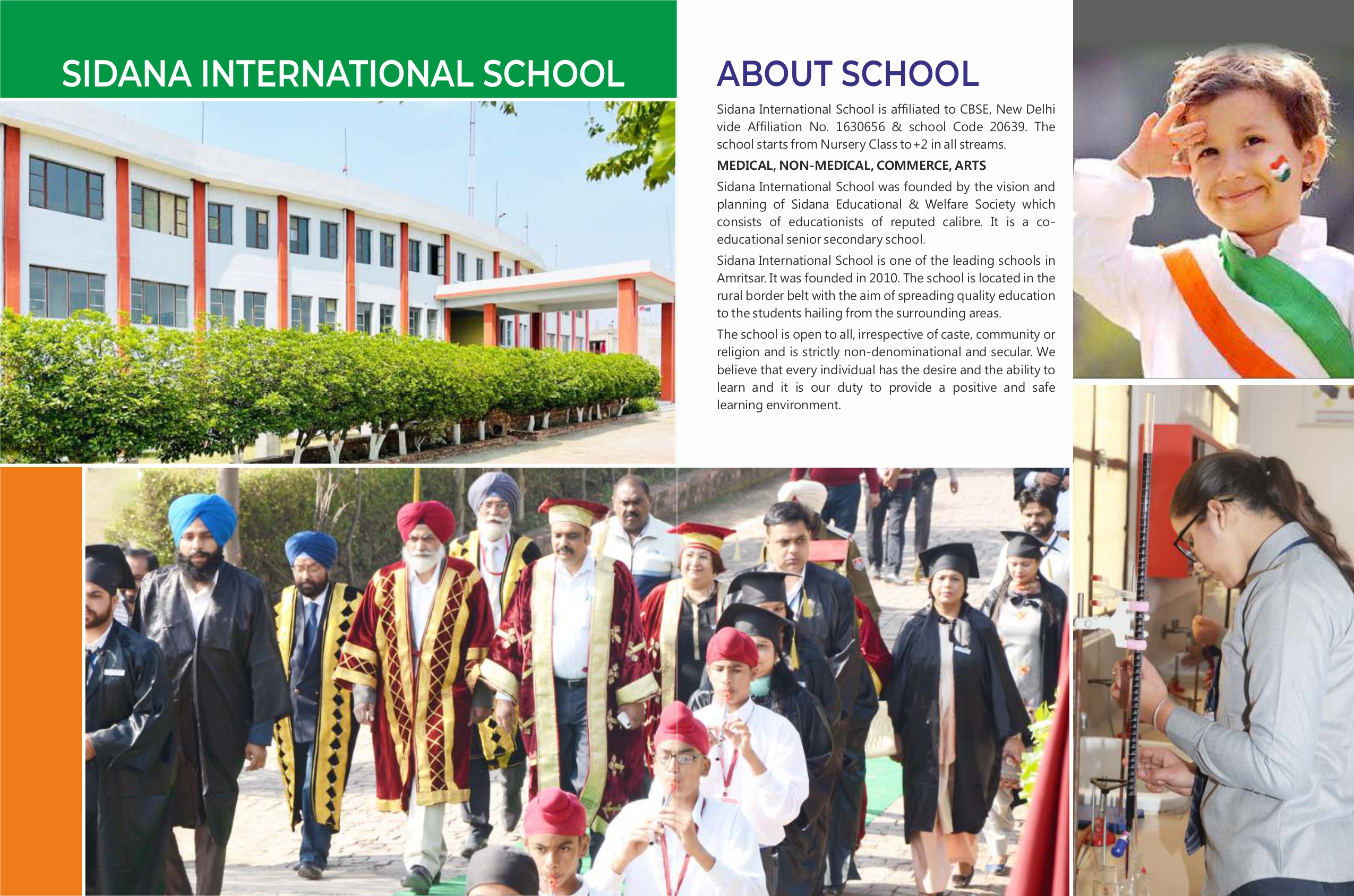 Sidana International School was founded through the foresight and planning of Sidana Educational & Welfare Society which consists of educationists of reputed caliber. It is a co-educational senior secondary school for boys and girls.